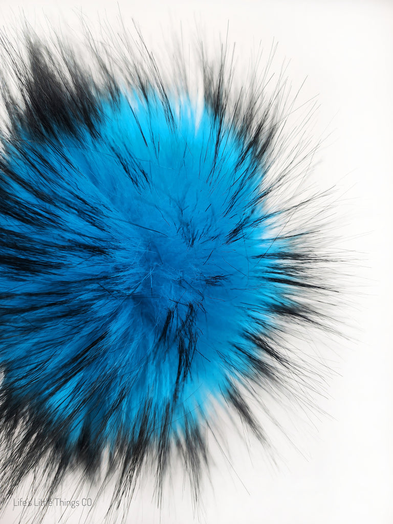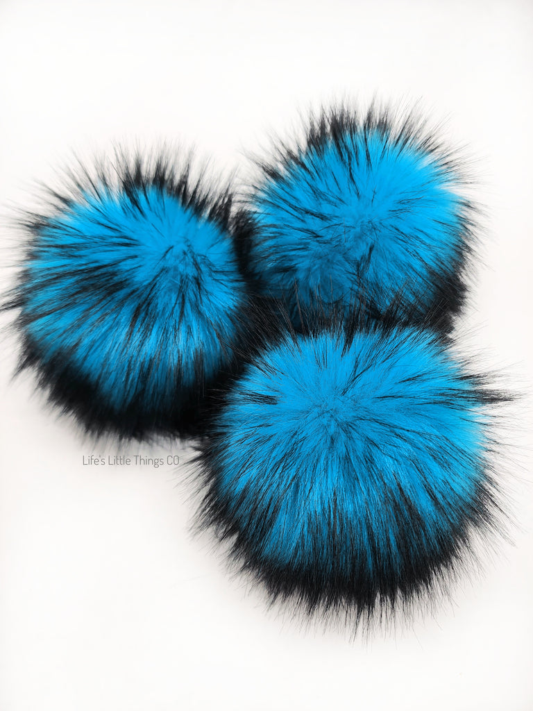 Price is for 1 Black Iced Electric Blue Faux Fur Pom Pom