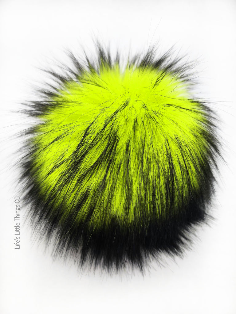 Price is for 1 Black Iced Electric Yellow Faux Fur Pom Pom